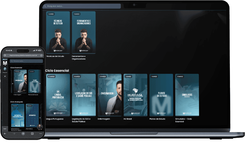 Esses recursos não são bônus. São parte do método. Quem compra qualquer combo já começa a estudar do jeito certo desde o primeiro dia.